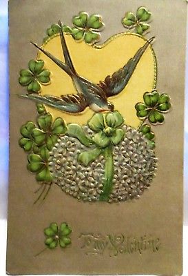 Title (ebay affiliate link): 1910 POSTCARD TO MY VALENTINE, BLUEBIRD WITH FLORAL EGG & SHAMROCKS