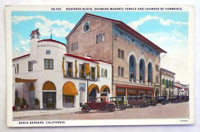 1920s MASONIC TEMPLE Santa Barbara colored postcard unused