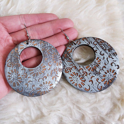 Title (ebay affiliate link): Vintage Womens Antique Bohemians Wooden Flower Patterned Charm Dangle Earrings