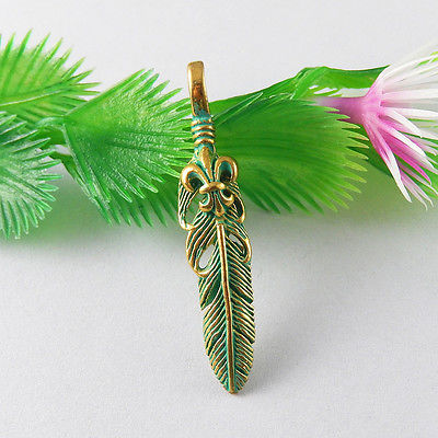 Title (ebay affiliate link): **3pcs Antique Gold Alloy Long Green Leaf Charms Pendant Jewelry Crafts 41x8x5mm