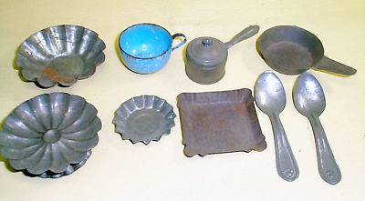 VINTAGE TIN WARE CHILDS KITCHEN PLAY PIECES