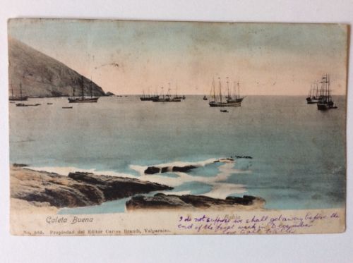 vintage postcard, Chile, Caleta Buena, Valpariso, sailing ships, 1908