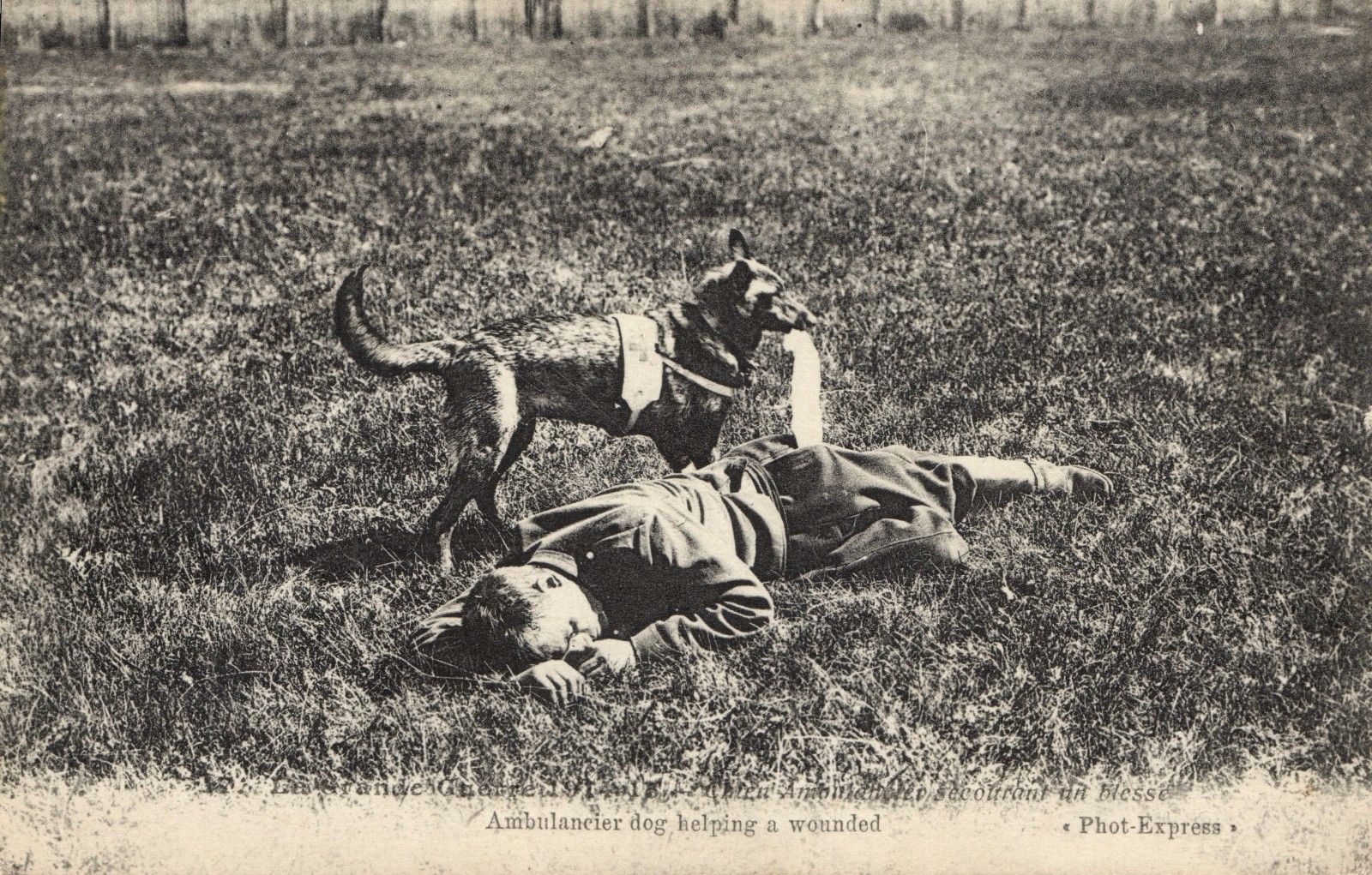 Title (ebay affiliate link): Red cross DOG helping wounded soldier vintage photo postcard