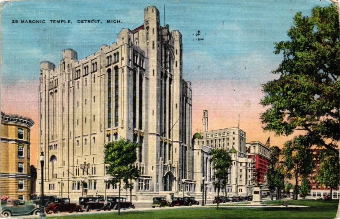 Title (ebay affiliate link): DR JIM STAMPS US MASONIC TEMPLE DETROIT MICHIGAN 1937 POSTCARD