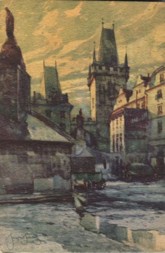 Mayfairstamps Czechoslovakia Prague artist signed Pont petit cote postcard