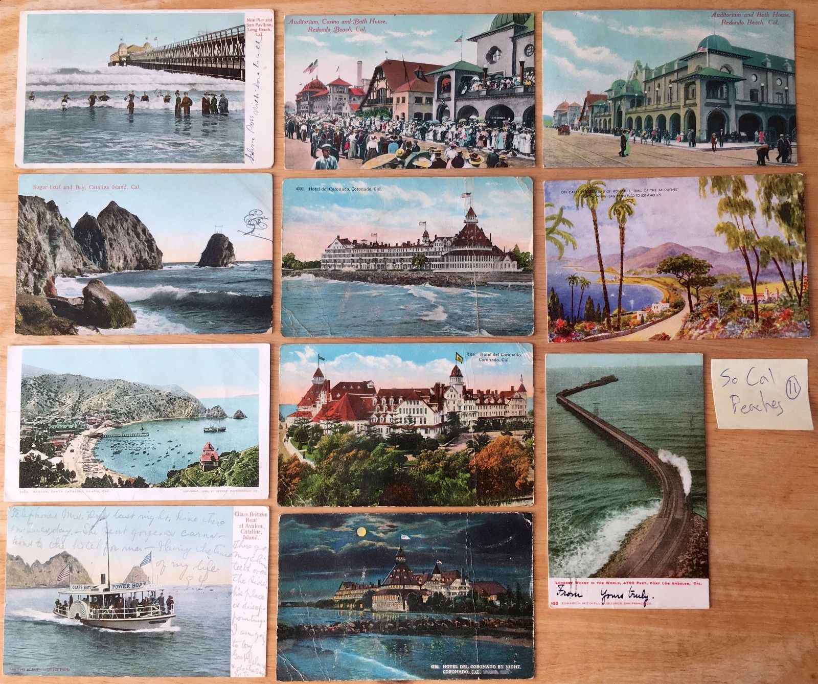 Lot of 11 Postcards Southern California beaches: Redondo Beach Coronado Catalina