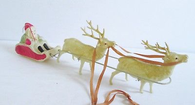 Vintage / Antique Christmas Santa Claus Sleigh Reindeer Royal Celluloid Figure