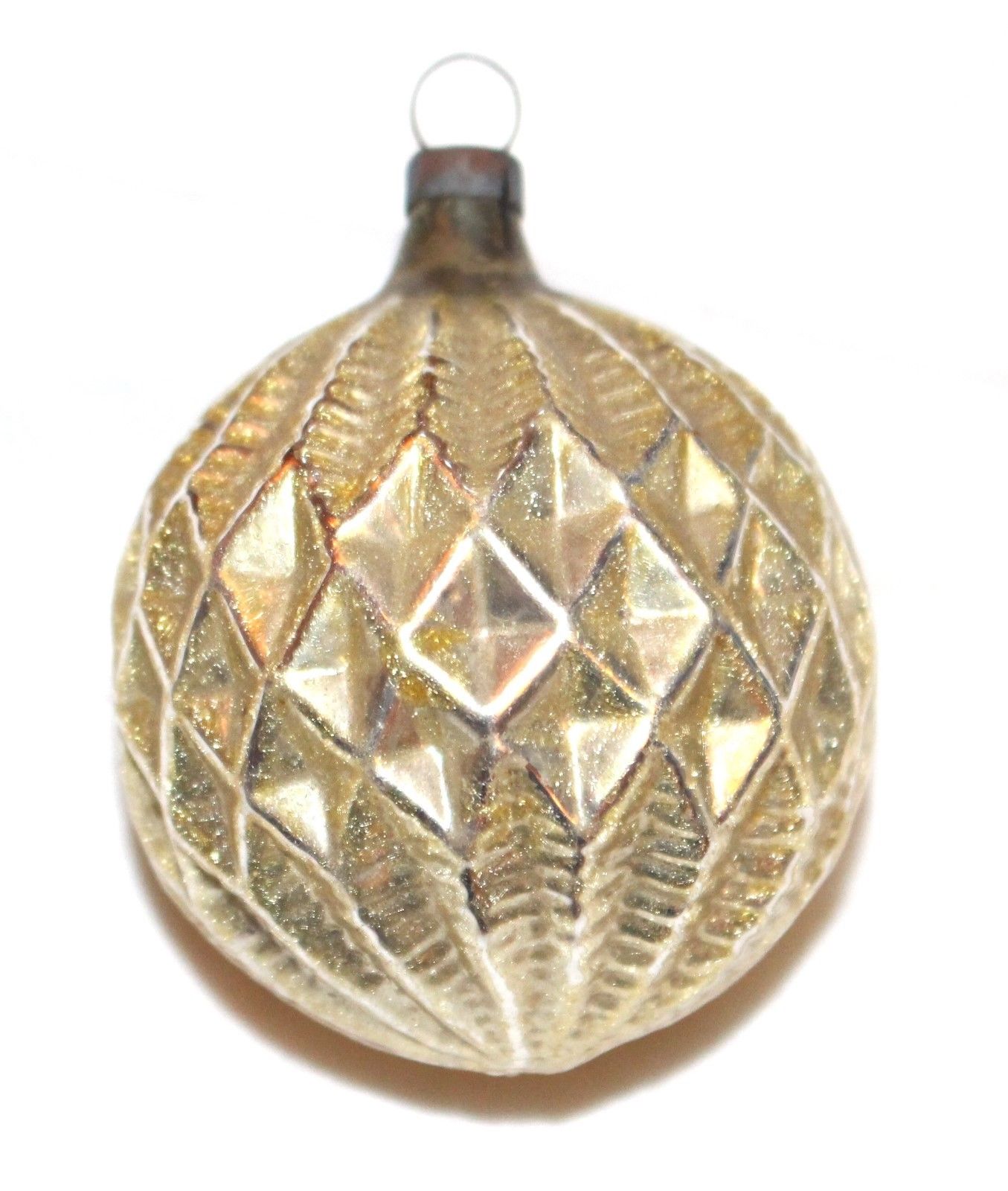 Title (ebay affiliate link): Geometric Sphere, Squares, Indented Waves. Early 1900s Glass German ornament.