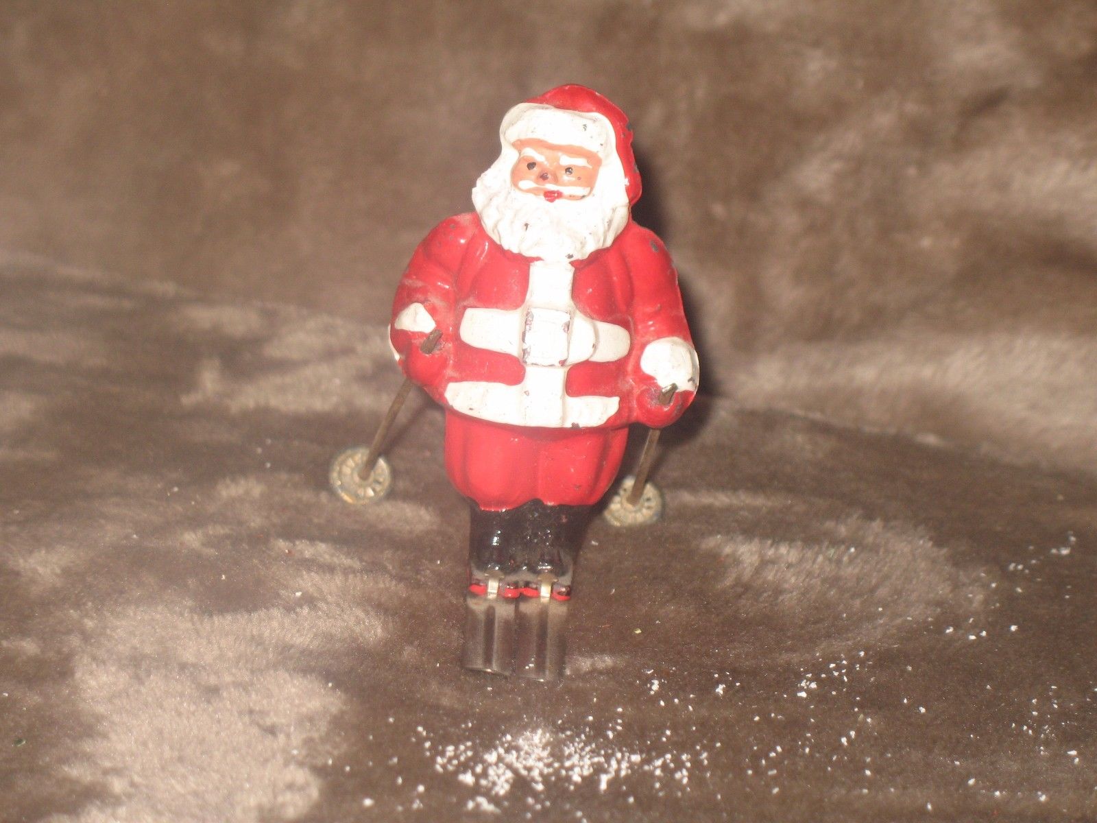 VINTAGE BARCLAY LEAD SANTA ON SKIS WITH POLES