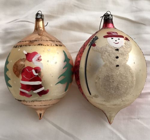 Title (ebay affiliate link): 2 Antique Poland Snowman & Santa Claus Vintage Glass Mica Ornament Bulbs