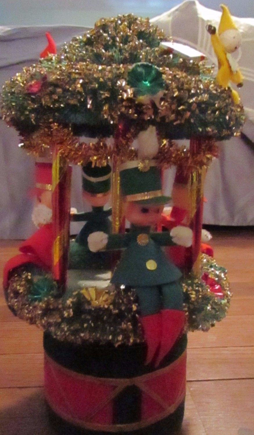 Title (ebay affiliate link): Vintage Christmas Elves Wind-Up Musical CAROUSEL Jingle Bells Japan