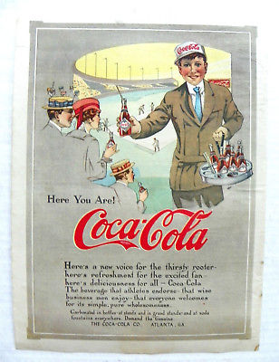 Title (ebay affiliate link): 1915 (JUNE. 27) SUNDAY MAG. "HERE YOU ARE!" COKE VENDOR AT BASEBALL GAME AD.