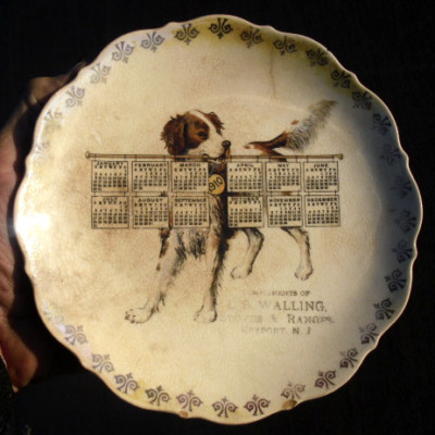 1910 ADVTG PLATE W DOG L B WALLING STOVES KEYPORT NJ