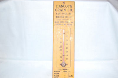 WOODEN ADVERTISING THERMOMETER "HANCOCK GRAIN CO"