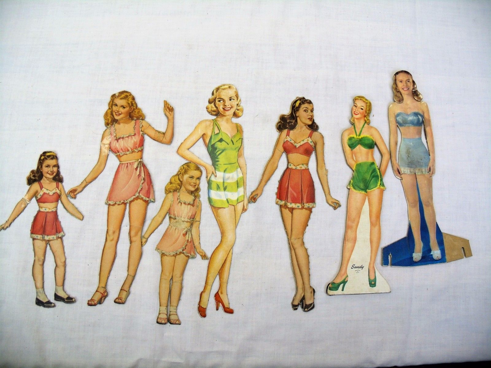 Title (ebay affiliate link): Fashion Paper Dolls vintage 1940s 1950s Clothing 7 doll lot sisters hand colored
