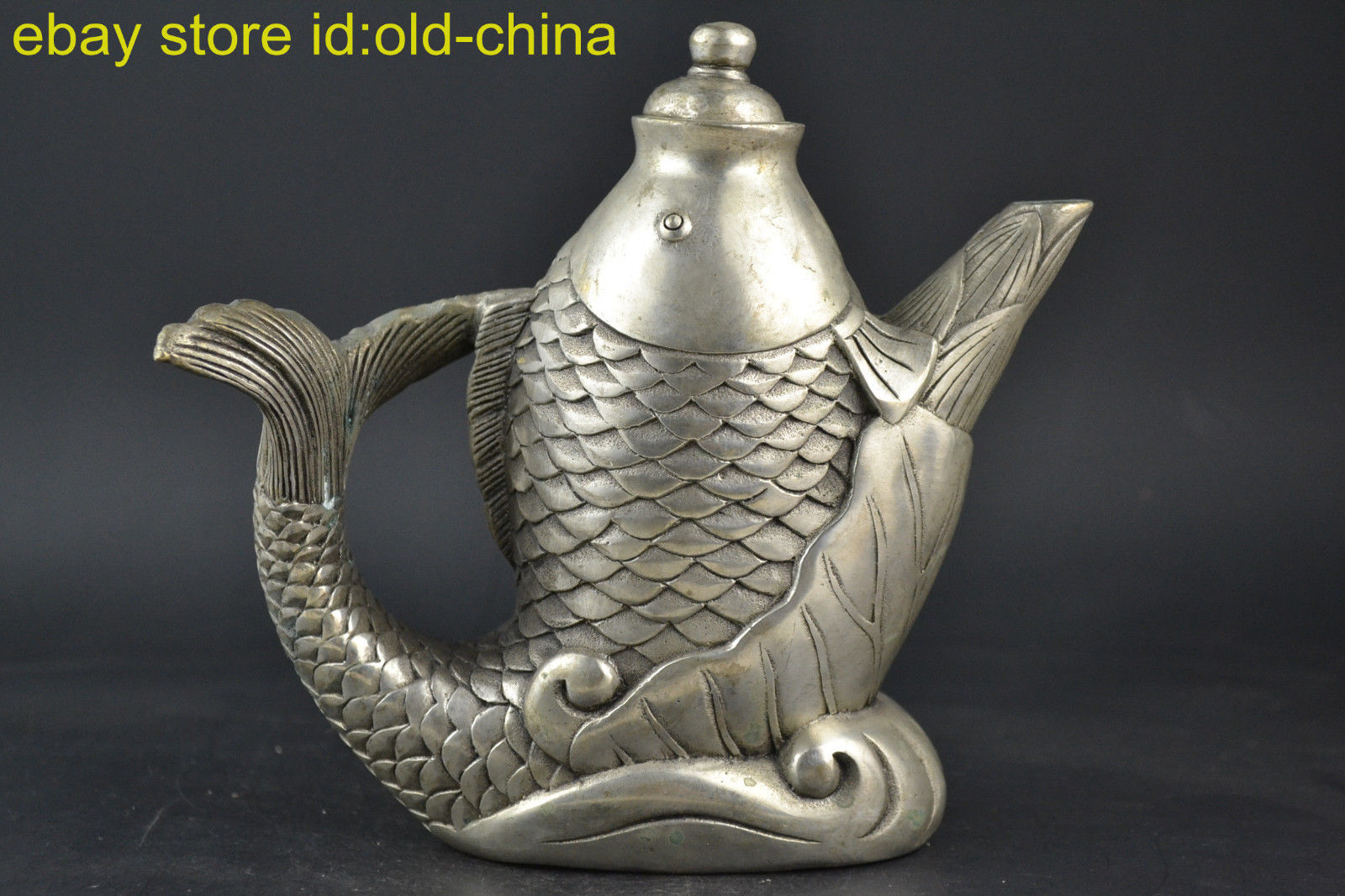 Title (ebay affiliate link): Nice Collectible Old Tibet Silver Handwork Lucky Fish Design Noble Teapot