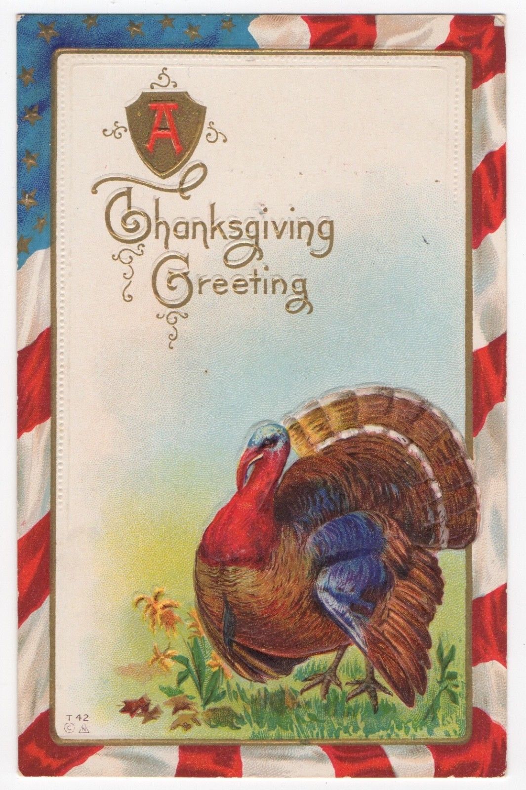 Title (ebay affiliate link): 1907c~PATRIOTIC AMERICAN FLAG Thanksgiving Day FAT Turkey Greeting Embossed