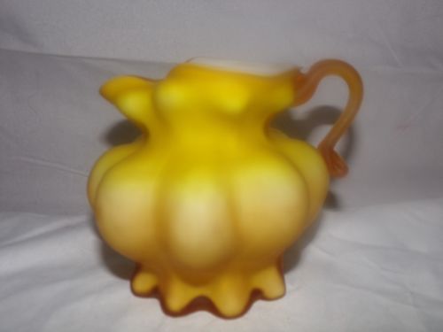 ANTIQUE ART GLASS PITCHER-CREAMER-YELLOW GLASS-4.5 INCH-NR!