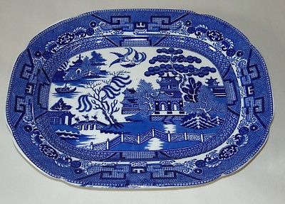 Antique ALLERTONS Large Platter BLUE WILLOW England