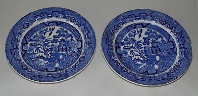 TWO Antique MAESTRICHT HOLLAND Luncheon Plates BLUE WILLOW
