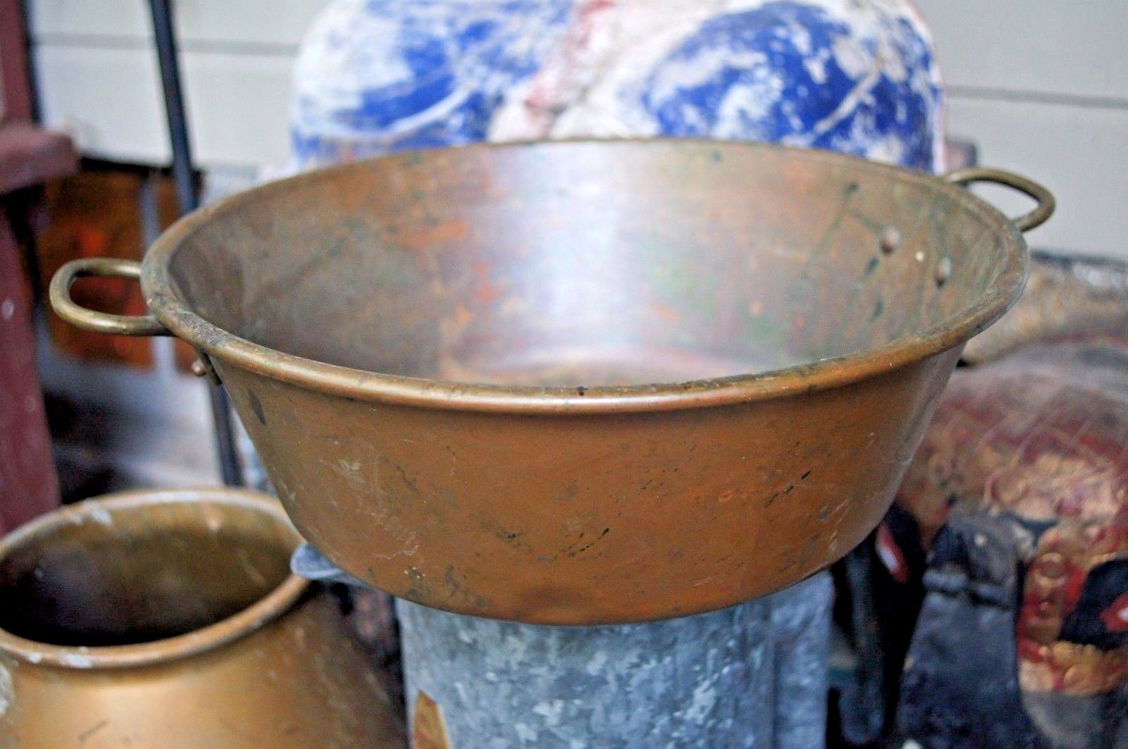 Title (ebay affiliate link): Large Antique Brass Bowl/Pan with Handles Copper Finish Beautiful Patina