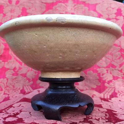 ANTIQUE CHINESE SONG DYNASTY FUJIAN LONGQUAN BROWN CELADON GLAZED BOWL & STAND