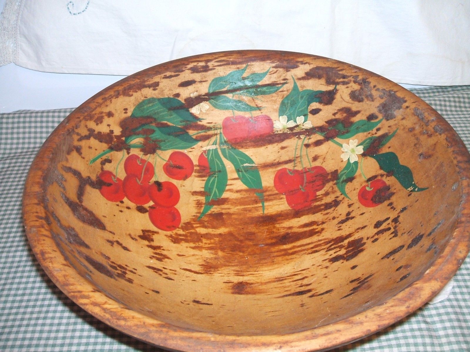 VTG PRIMITIVE LARGE WOOD BOWL CHERRIES? NO MARKINGS***