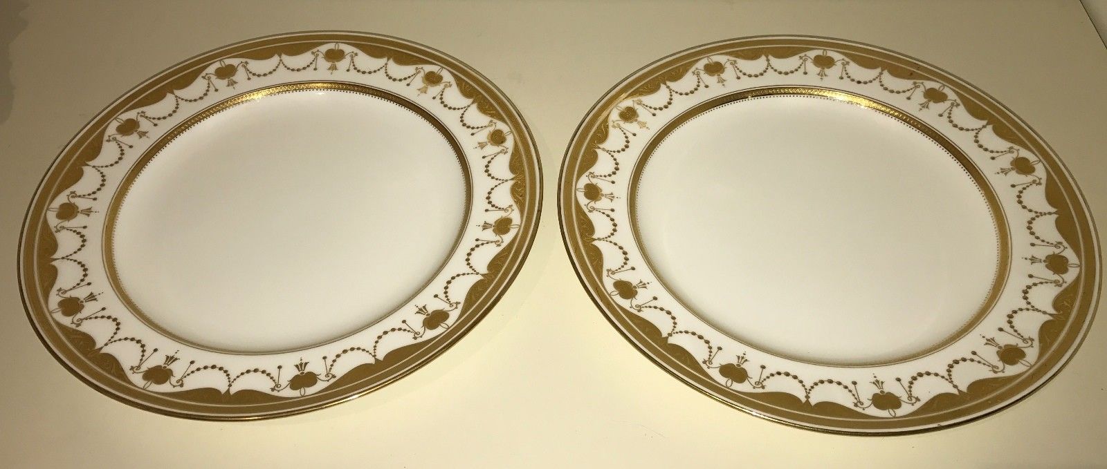 Title (ebay affiliate link): 2 Antique 1900 Minton Gold Embossed G7962 10"Dinner Plates Gilman Collamore NY B