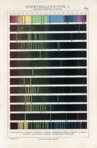 Title (ebay affiliate link): 1900s SPECTRAL ANALYSIS SPECTRA OF CHEMICAL ELEMENTS Antique Litho Print