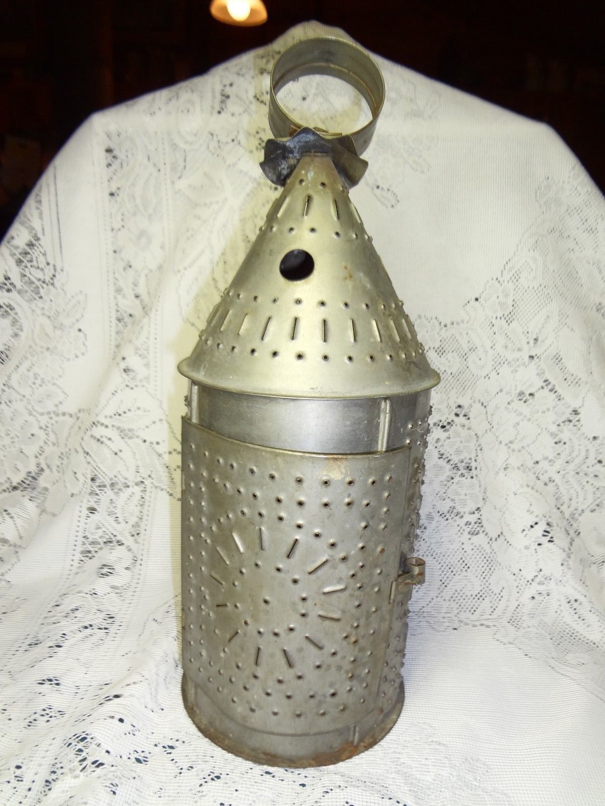 Title (ebay affiliate link): Primitive Punched Tin Candle Lantern Pierced Paul Revere Style Americana Folk