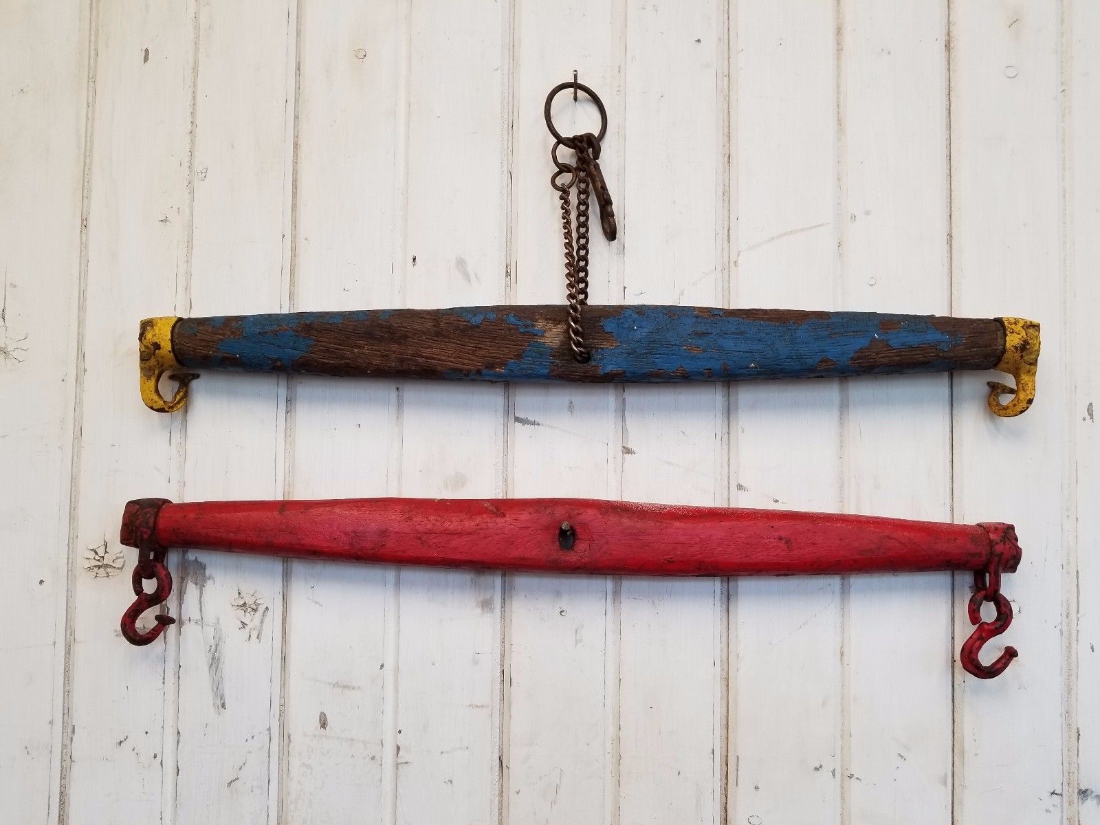 Title (ebay affiliate link): 2 Antique Wooden Single Tree / Evener ~ Vintage Horse Drawn Farming Wall Hooks