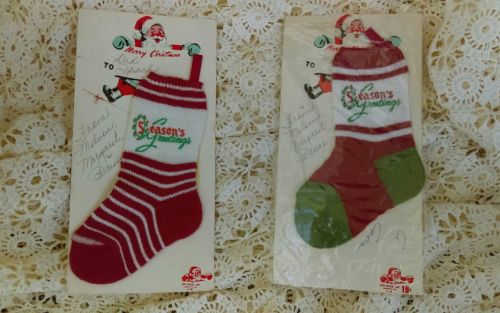 Title (ebay affiliate link): 2 VINTAGE MERRY CHRISTMAS SMALL MINI RED, GREEN & WHITE COTTON STOCKING ORNAMENT