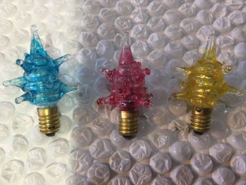VINTAGE LOT 3 STAR BURST CHRISTMAS BULBS SPIKE POINT Glass LIGHT Atomic