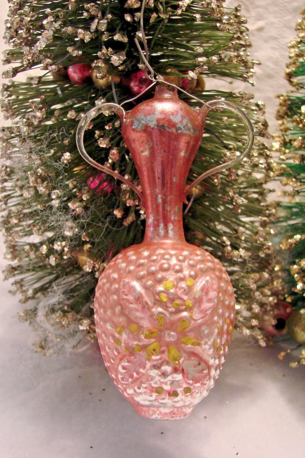 Title (ebay affiliate link): ANTIQUE VINTAGE 4" LONG PINK URN VASE GERMAN CHRISTMAS ORNAMENT BLOWN GLASS