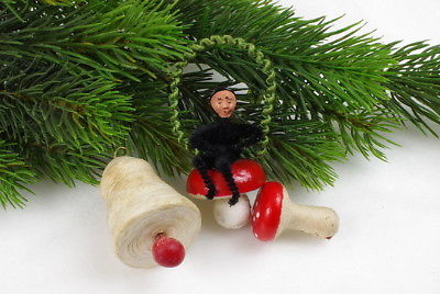 Title (ebay affiliate link): 3 x Vintage Spun Cotton Christmas Ornaments,chimney-sweep,bell,toadstool