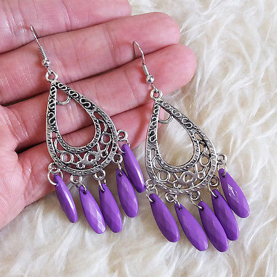 Title (ebay affiliate link): Vintage Women Bohemian Antique Hollow Plate Purple Teardrop Bead Dangle Earrings