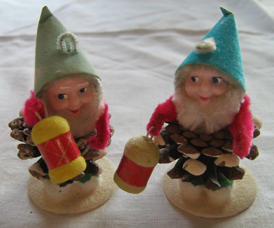 Title (ebay affiliate link): 2 CUTE Vtg Japan Christmas Puty Pinecone Elves Dwarfs
