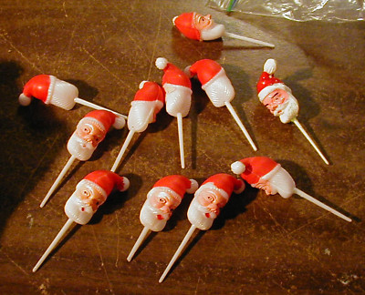 Title (ebay affiliate link): 11 ANTIQUE VINTAGE CELLULOID SANTA CLAUS CUPCAKE TOPPER