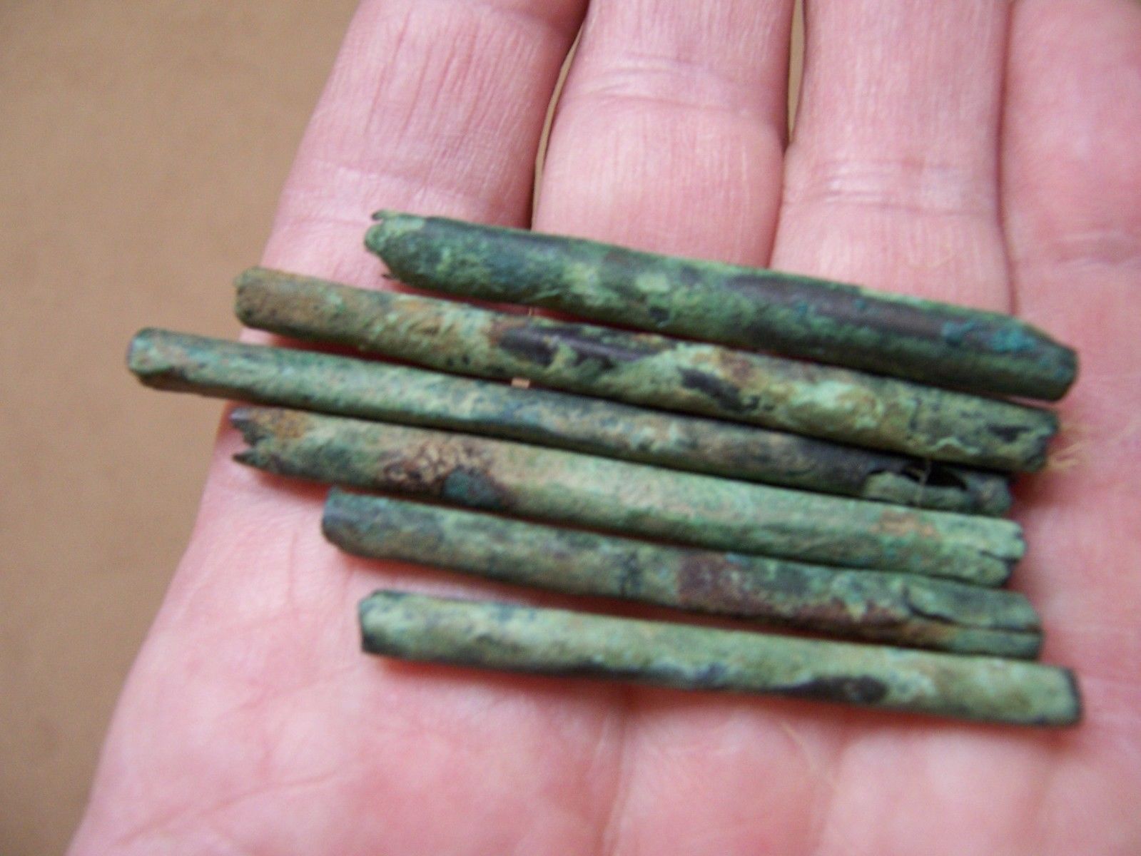 SIX AUTHENTIC ROLLED COPPER BEADS FOUND IN THE 1920''S IN THE STATE OF WASHINGTON
