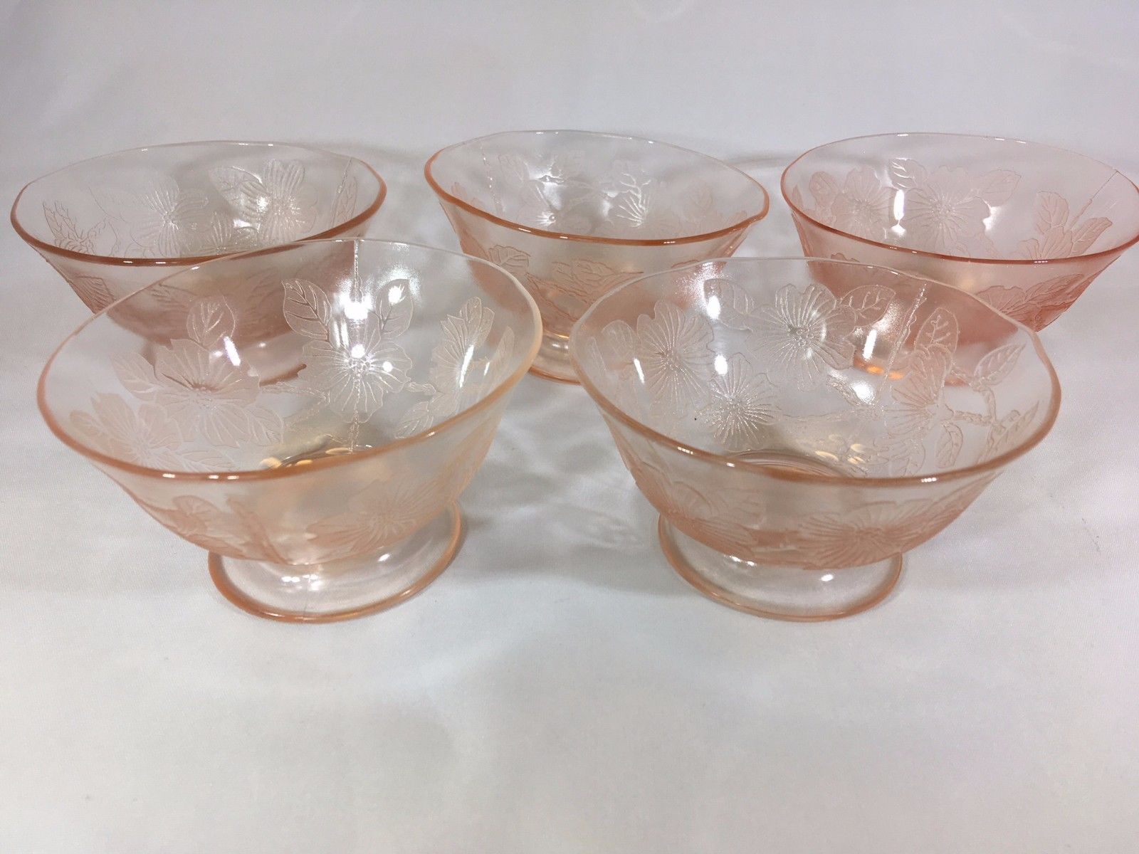 Title (ebay affiliate link): Depression Glass Pink Set of Five Small Dessert Cups