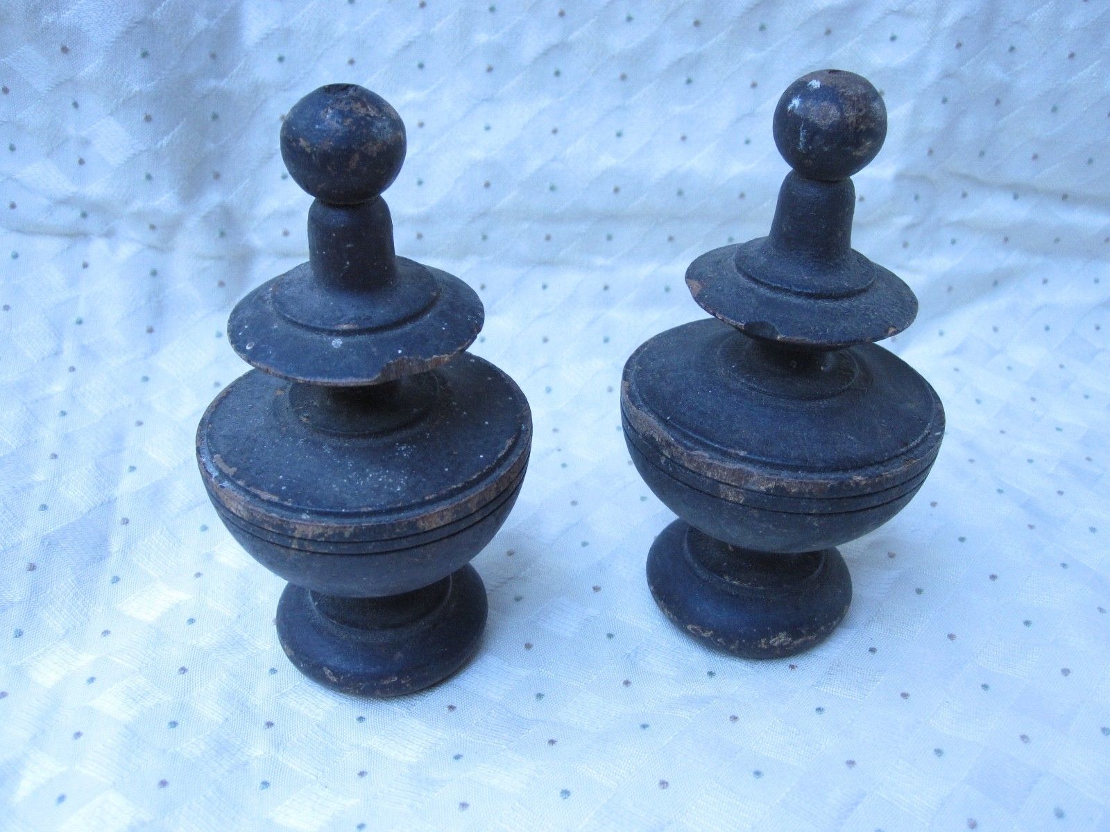 Title (ebay affiliate link): Pair of Salvaged Antique Wood curtain Urn Mantel finials 19th Century Victorian