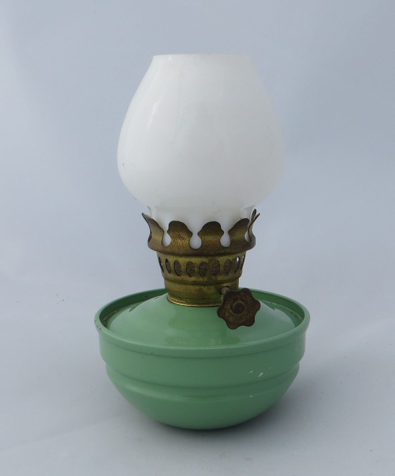 Title (ebay affiliate link): Vintage Green Kelly Style Nursery Oil Lamp with Pixie Shade