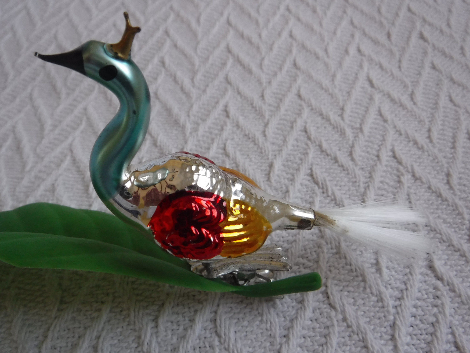 Title (ebay affiliate link): Vintage Mercury Glass Clip On Peacock Christmas Ornament Spun Glass Tail Germany