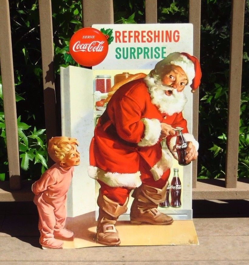Title (ebay affiliate link): 1950 Coca-Cola Store Cardboard Display Sign Refreshing Surprise Santa Christmas