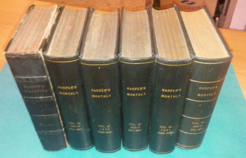 Title (ebay affiliate link): 6 hardback bound harpers new monthly magazine 1853 1865 1870 1881 1896 civil war