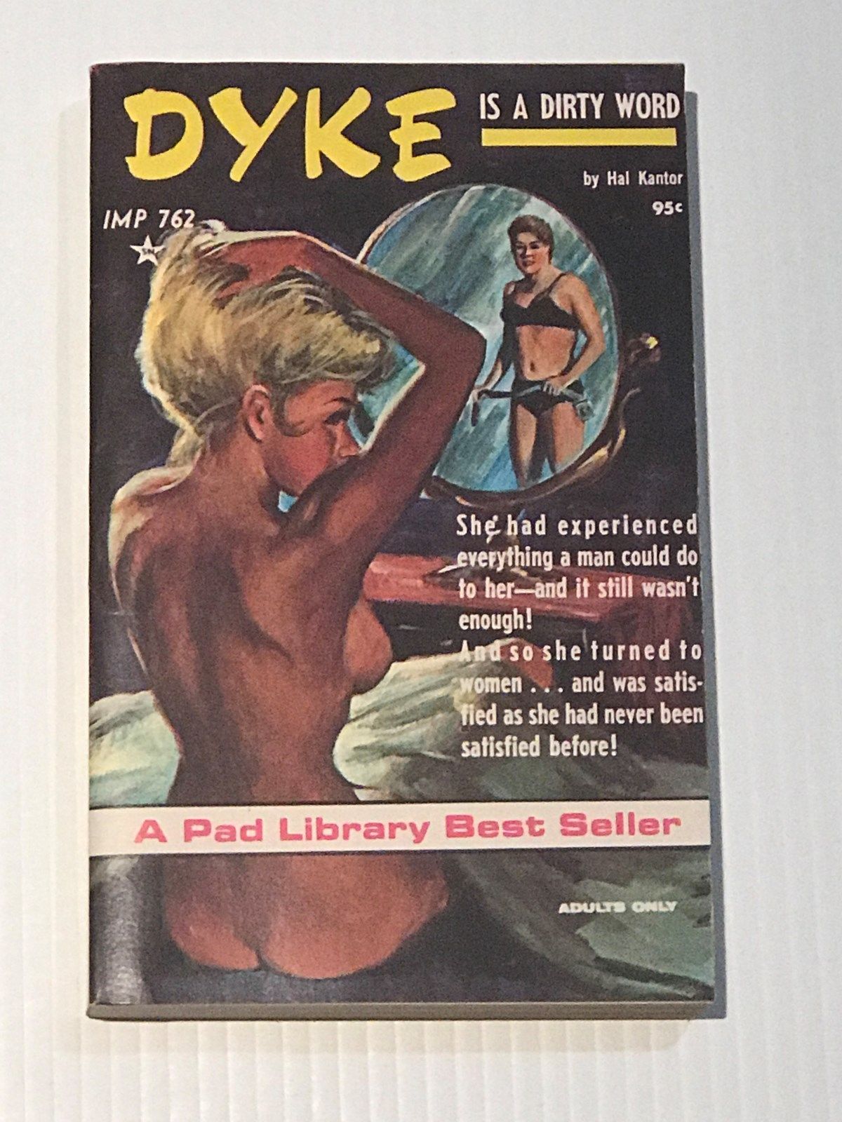Title (ebay affiliate link): 1966 UNREAD Vintage Paperback IMP762 DYKE IS A DIRTY WORD by HAL KANTOR