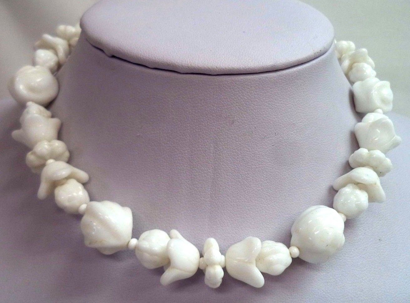 Title (ebay affiliate link): STUNNING VINTAGE ESTATE HIGH END MILK GLASS BEADED 15 1/2" NECKLACE!!! 7799I