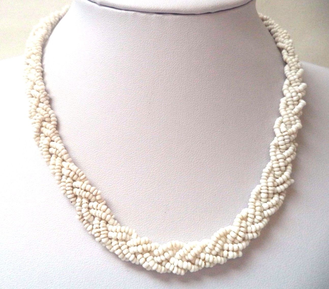 Title (ebay affiliate link): STUNNING VINTAGE ESTATE WHITE MILK GLASS BEADED BRAIDED 17 1/2" NECKLACE!! 6566T