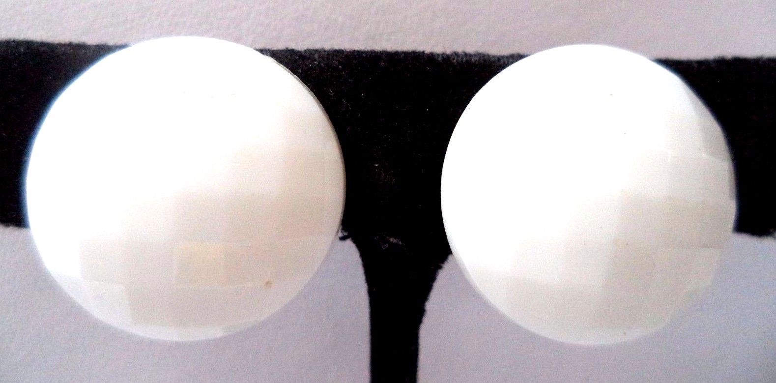 STUNNING VINTAGE ESTATE WHITE MILK GLASS ROUND CLIP 3/4" EARRINGS!!! 6570Q
