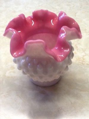 FENTON CRANBERRY CASED HOBNAIL MILKGLASS RUFFLED VASE